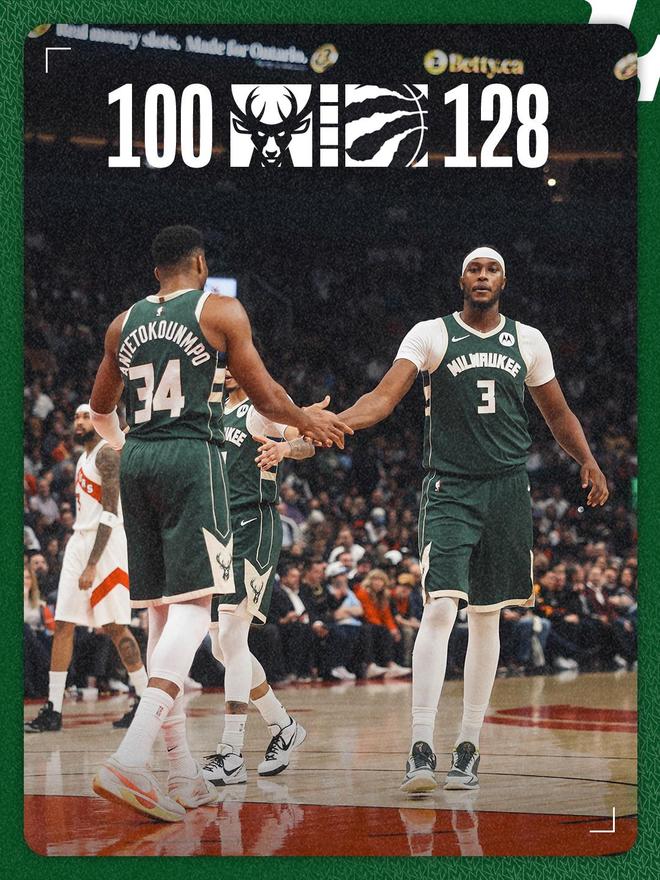 多倫多隨后盡遣替補,兩隊開始在場上練兵,比賽時間逐漸走完。最終,雄鹿以100比128完敗猛龍,多倫多則實現了3連勝。